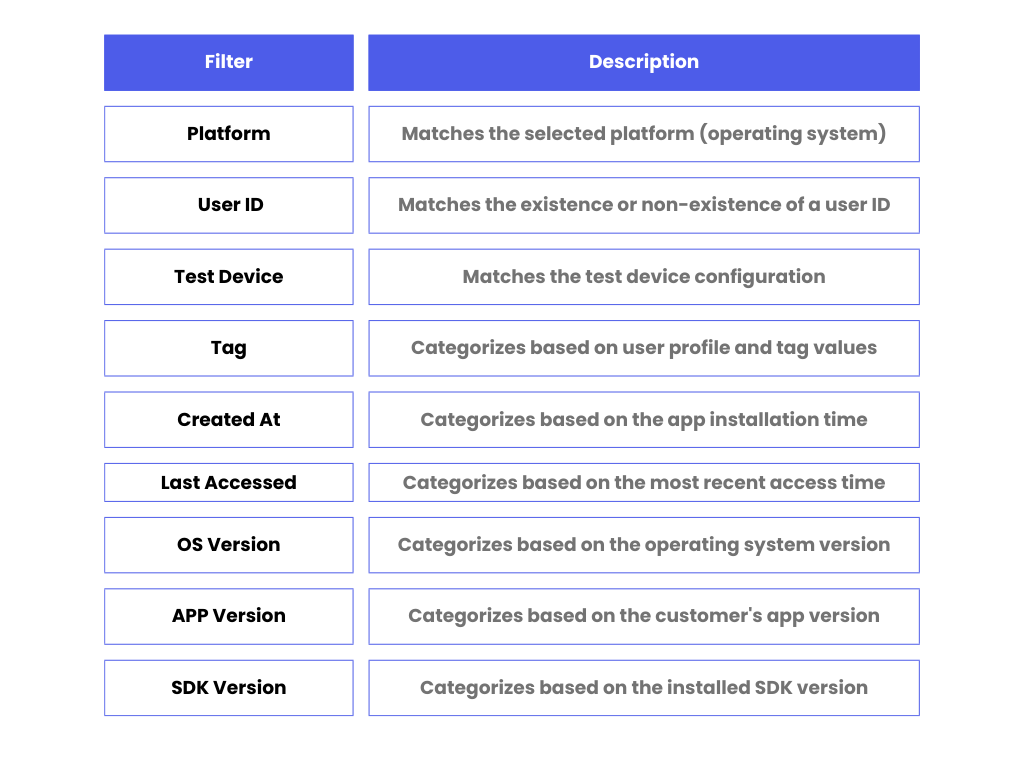 Below is a breakdown of the filters available in the segmentation feature: