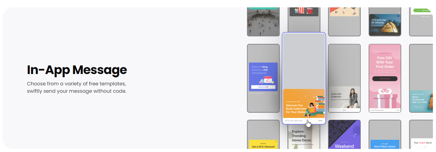 In-app messages serve as a direct communication channel between you and your app users. Unlike push notifications which have a relatively high opt-out rate, in-app messages appear as users engage with your app, making them more likely to capture attention. These messages can be used to deliver targeted offers, guide users through the app, or provide timely assistance, all of which contribute to improved conversion rates.
